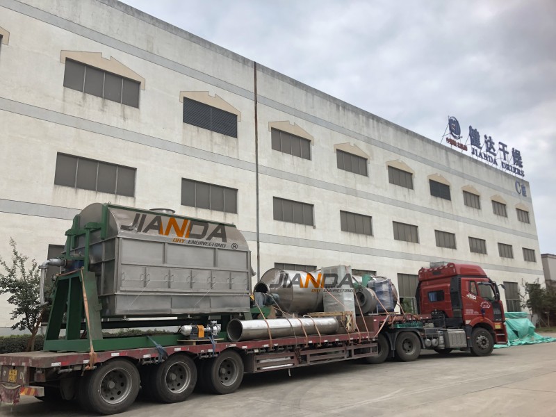 近日,健達滾筒刮板干燥設備經最后的出廠檢驗后,順利發出。滾筒刮板干燥機是一種內加熱傳導型轉動干燥設備,可分為兩種形式:單筒、雙筒干燥機,另也可按操作壓力分常壓和減壓兩種形式。